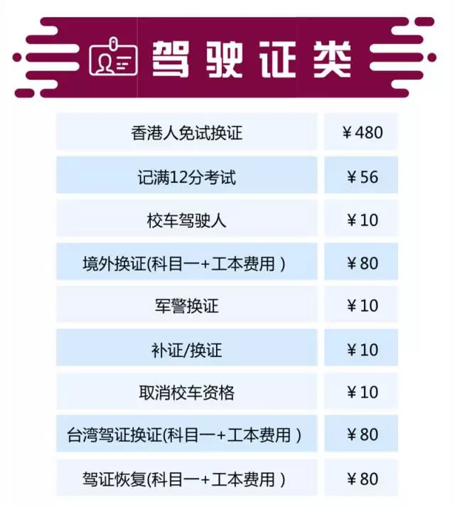 深圳车管所公布车驾管业务收费标准: