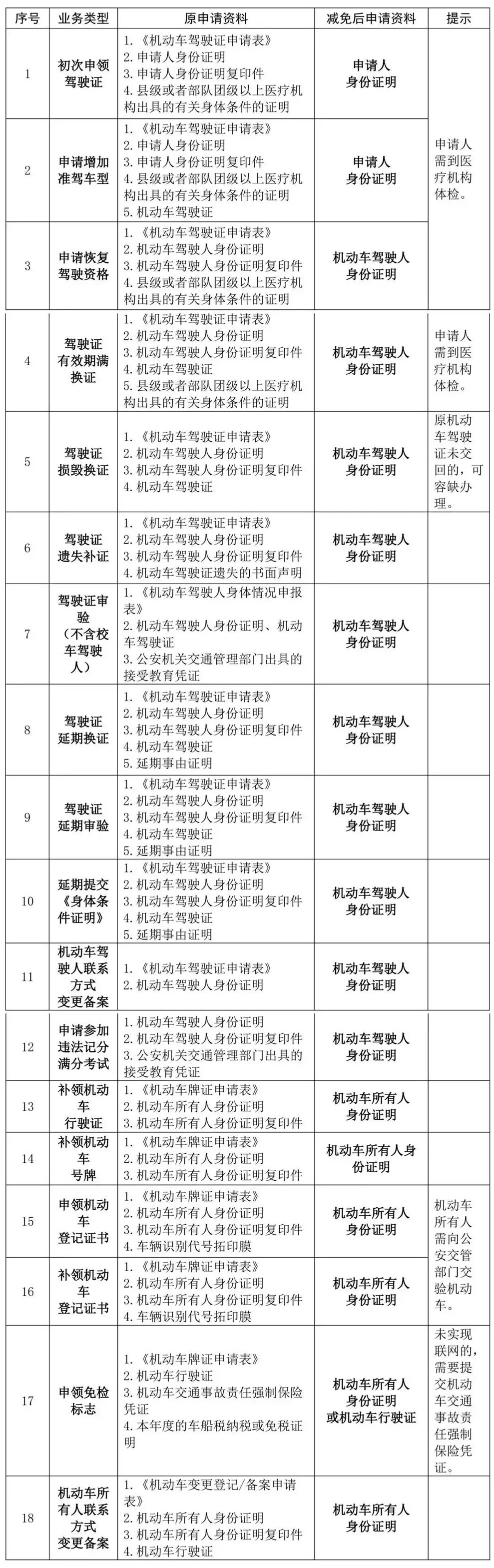 原来需要申请人提交的相关部门的证明凭证,如车辆购置税、车船税、交强险、报废回收证明、医院体检证明等,公安交管部门将积极推进与相关部门联网核验,逐步取消提交纸质证明凭证。